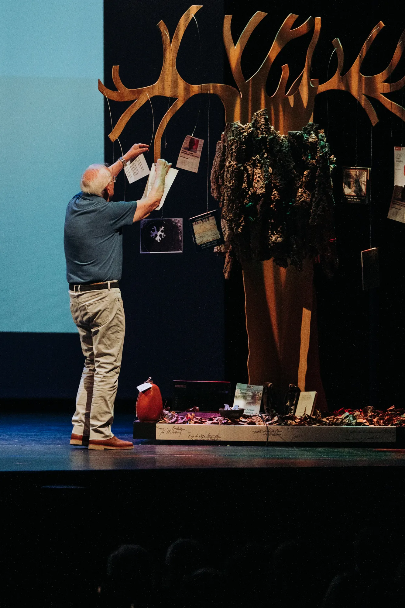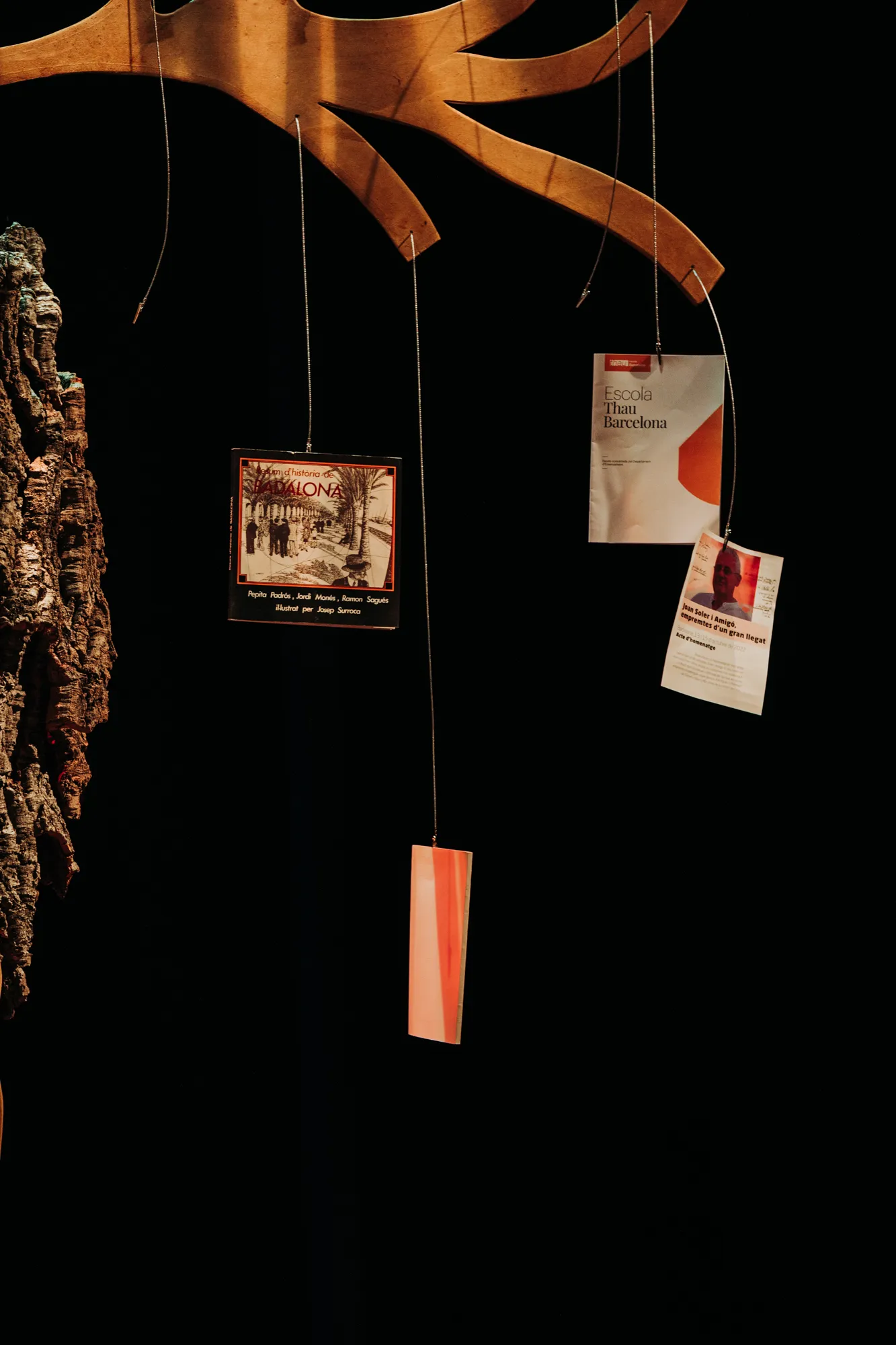 Diseño y construcción de un elemento corpóreo para un acto de homenaje del Ajuntament de Badalona al poeta Joan Soler, presentando un elemento natural -un árbol- con unas ‘ramas’ de donde se podían colgar poesías o pequeños libros del poeta, que los invitados a leerlos iban colgando.